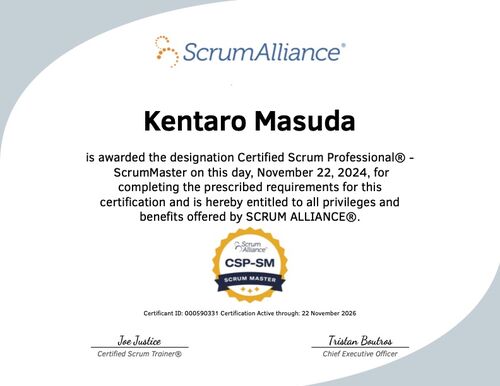 Joe Justiceさんが講師のCSP-SM研修を受講し、認定スクラムプロフェッショナル・スクラムマスター(Certified Scrum Professional - ScrumMaster®:CSP-SM®)を取得しました。 資格について CSP-SMは、ScrumAllianceの3つあるスクラムマスター資格の中で最上…